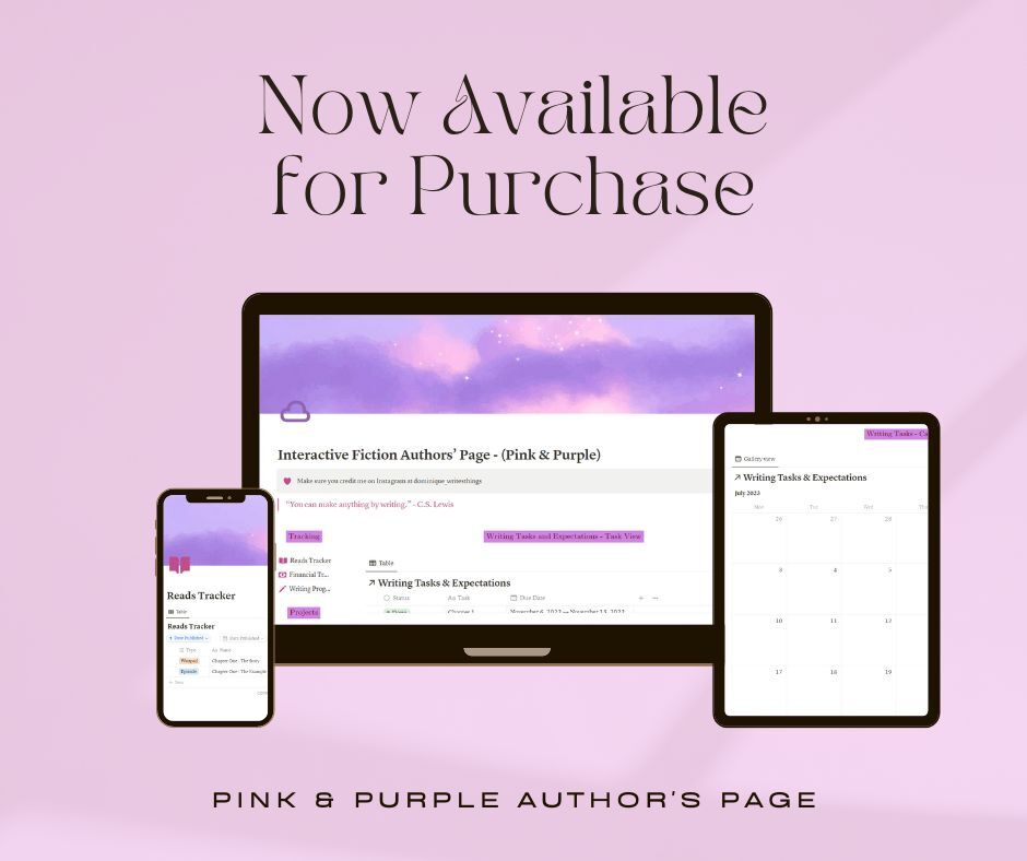 Have you ever struggled to organize all your many ideas into one clean and easy space? Then this Notion template is for you! Notion is an easy-to-use productivity app that you can download to your laptop, phone, or tablet. Not only that, but you can visit the website! It's free to use, but the full version is worth the money. That being said, you can get the full version if you're a student using your student account. When learning how to use Notion, I noticed that there aren't many pages for authors to use. That being said, I'm here to solve that issue!